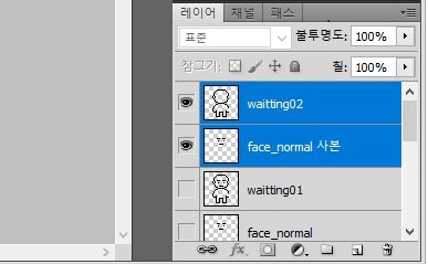 역시나 이번에도 평범한 상태의 표정을 일단 복사해서, 이걸 필요한 몸통과 매치를 시켜 주도록 합니다. 이렇게 해서 원본은 원본대로 지킬 수 있습니다.