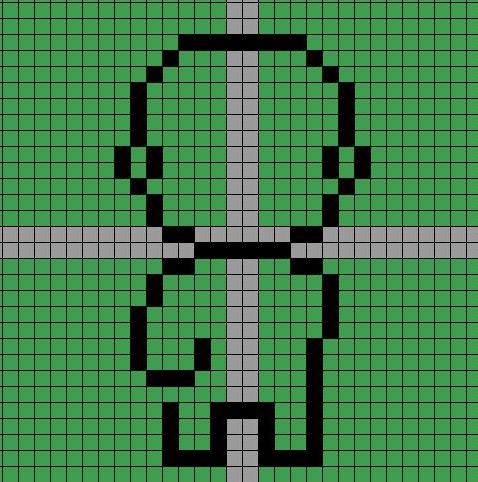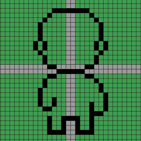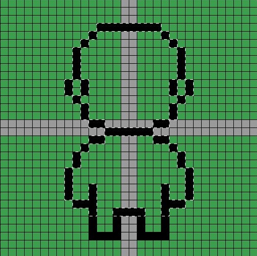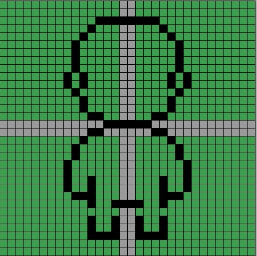 그래서 앞으로 향해 있는 왼쪽 다리를 1픽셀 더 크게 만들어 보았습니다. 이렇게 했더니 무언가가 더 커진 = 더 앞으로 온것 같은 느낌이 듭니다.