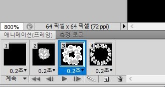 이제 마지막의 작업을 하기 위해서, 일단 위 스크린샷에서 나온 것처럼, 하나하나 만들어 주기는 줍니다. 그리고 나서 이렇게 0.2초씩 끊어주는 프레임을 4개로 해서 애니메이션을 만들어 보고자 합니다.