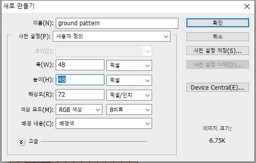 그렇게 해서, 48 X 48 픽셀의 새로운 캔버스를 만들어서 본격적으로 패턴을 만들어 갈 준비를 해야 합니다. 다만, 여기서 블로그 포스팅의 길이가 너무 길어진다고 생각을 해서 한번 끊어 주기로 하였습니다. 그래서 실습 내용의 포스팅은 여기서 한번 끊어주고, 다음 포스팅에서 남은 내용을 마져 할 것을 약속 드립니다.