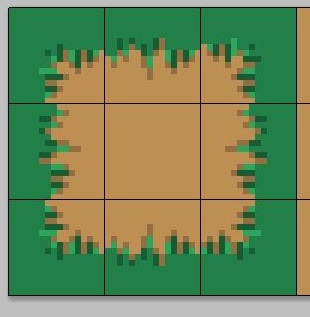 드디어 마지막 포스팅이라고 해야 할까요? 일단 이 배경을 만들기 위한 타일을 만드는 작업을 끝내기 위한 작업을 하고자 합니다. 물론 100% 완성은 아니기는 합니다만, 그래도 일단 여기까지 가 보도록 합니다. 일단 이 풀밭과 맨땅의 경계를 한번 다 만들어 보도록 합니다.