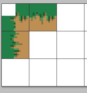 드디어 마지막 포스팅이라고 해야 할까요? 일단 이 배경을 만들기 위한 타일을 만드는 작업을 끝내기 위한 작업을 하고자 합니다. 물론 100% 완성은 아니기는 합니다만, 그래도 일단 여기까지 가 보도록 합니다. 일단 이 풀밭과 맨땅의 경계를 한번 다 만들어 보도록 합니다.