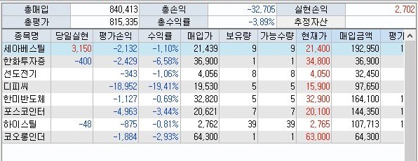 왠지 지난번에 베타를 이용해서 가지고 온 종목선정의 약빨이 다 떨어지는 것인지 아니면, 시장이 전체적으로 하락장에 있는지는 모르겠습니다만, 일단 이래저래 상황이 좋지 않기는 않았습니다. 그래도 그 내용이라도 일단은 기록으로서 남기기는 남겨야 하기에 일단 포스팅으로 올려 보고자 합니다.