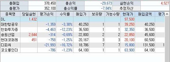| 다시 시작된 한주 - 2021년 4월 19일 주식 모의투자 (2) | 2021.04.20 |