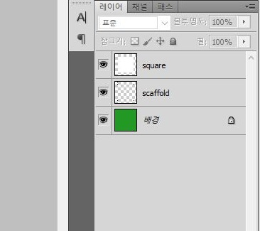 그리고 나서 새로운 빈 레이어를 만들어 주고 나서, 여기다가 다시 24 X  24 픽셀 사각형을 만들어야 하니까, scaffold라는 레이어도 같이 만들어 주도록 합니다.