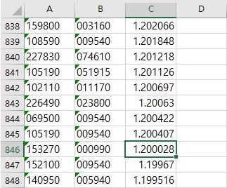 하는 수 없이 일단 코스피에서는 베타값이 1.2 이상인 종목들만 선정을 하고자 합니다. 그리고 나서 이 종목 코드들의 중복값을 엑셀 고유의 기능으로 제거한 다음, 코스피 리스트를 확보해 보도록 합니다.