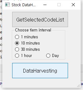 데이터 하베스터의 UI인데 일단 여기서 Day가 아니라 10분을 제대로 라디오 버튼으로 설정하고 나서, 어떻게 작업을 시작하도록 합니다.