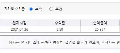 일단 지난주 보다는 떨어진 내용이기는 합니다만, 그래도 이 수익률이 그래도 플러스 인 것이 무엇인가 하는 생각이 들었습니다.