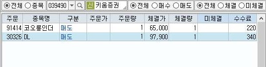 이러한 에러를 어떻게 해서 극복하고 난 다음에, 위 스크린샷에서 볼 수 있는 것처럼, 일단은 두 종목의 매도가 일어는 났습니다.