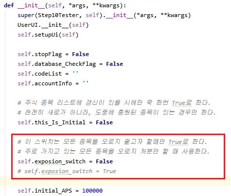 그리고 나서 지난주에 정리를 하기 위해서 작동시킨 스위치를 다시 False로 만들어 주는 조치를 취해 주어야 합니다. 이렇게 하는 것으로 일단 작업이 되었습니다.
