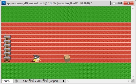 그리고 전진하다가 부딪치면 데미지를 입는 장애물인 나무 상자를 먼저 배치해 보았습니다. 그런데 어딘가 어색하다는 느낌이 들고 있습니다.