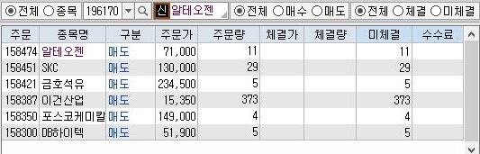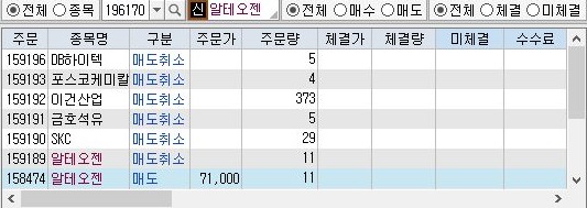 그리고 나서 다음으로 봐야 하는 것으로 매매체결인데, 영 체결이 안되고 다시 취소가 되어 버리는 상황이 이어지고 있습니다. 아무래도 주식시장이 전반적으로 얼어붙은 모양입니다.