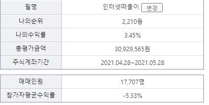 | 마지막의 직전 - 2021년 05월 27일 주식 모의투자 (0) | 2021.05.27 |