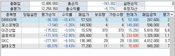결국 마지막까지 상황은 해결되지 못하고, 그저 위 스크린샷에서 나오는 것처럼 일단 74만원의 손해만 입은 것을 확인할 수 있었습니다.