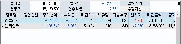 무언가 보유중인 주식의 가치가 너무 내려가서, 상황이 그렇게 좋지 못한 것을 확인할 수 있었습니다. 이런 상황에서 계속해서 수익이 발생하지 않으면 결국 손해만 보는 구조가 될듯 합니다.