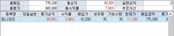 그런데 유의미한 변화가 있다면 하나 있는게, 그래도 보유주식의 조그만한 가치 상승으로 인해서 총 손익이 조금 증가는 했습니다만, 그래도 여전히 상황이 그렇게 좋지는 못합니다.