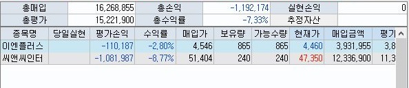 그런데 유의미한 변화가 있다면 하나 있는게, 그래도 보유주식의 조그만한 가치 상승으로 인해서 총 손익이 조금 증가는 했습니다만, 그래도 여전히 상황이 그렇게 좋지는 못합니다.