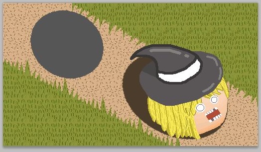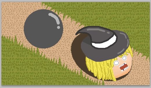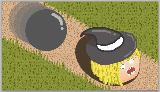일단 대포알을 그려 보기 위해서, 우선 타원형으로 그려서 마치 가속이 붙고 있는 것처럼 만들어 보기는 보았습니다. 그런데 영 어딘가가 어색하긴 합니다.