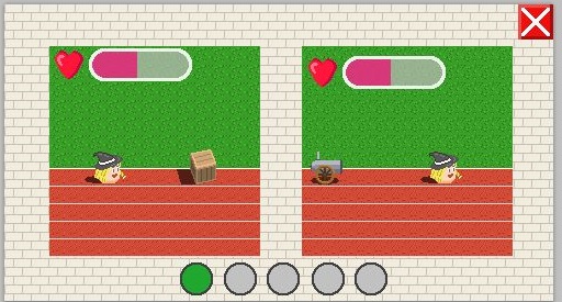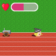 먼저 gif파일로 만든 장면인데, 장애물에 부딪치면 데미지를 입어서 죽을 수 있다는 것을 이야기 하고 싶었습니다만, 아직도 부족한 것이 있다는 생각이 드는 것은 기분 탓인 걸까요?