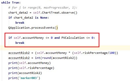 그리고 나서 다음으로 진행하기 위한 것으로는 위 스크린샷에서 볼 수 있는 것처럼, 일단 단순히 현금이 0원 이하만 되는 것이 아니라, 포트폴리오 가치 = 주식의 가치도 0원이 되는 상황까지 와야 그 종목의 백테스트를 그만 두라고 명령을 내려 줍니다.