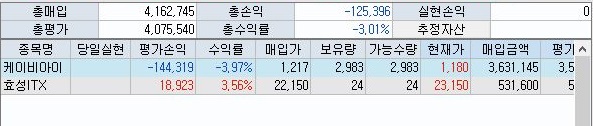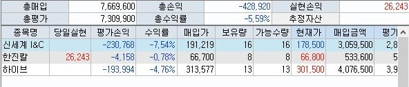말 그래도 보유하고 있는 주식의 약간의 가치 상승으로 인해서 손해가 더 줄어든 것을 볼 수 있었습니다. 물론 아직은 문제가 많기는 하지만, 그래도 이게 어딘가 하는 생각이 듭니다.