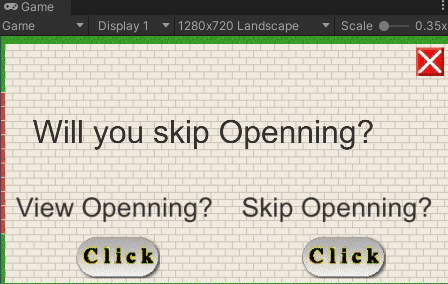 우선 스킵만을 눌렀을 때는 일단 아무것도 뜨지 않는다 = 오프닝이 시작하지 않는다는 것 까지는 어떻게 의도대로 나오기는 나왔습니다.