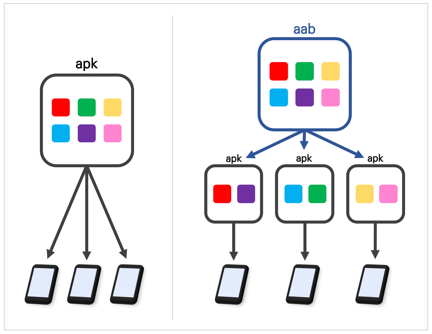 얼마전이라고 할 것도 없이 8월달부터 바뀐 구글의 정책에 따라서 개발자는 AAB형식으로 앱을 올려야 합니다. 그럼 사용자는 어떻게 적용되는가 하는 의문이 있는데, 그에 대해서는 다음과 같은 방식으로 적용이 된다고 합니다.