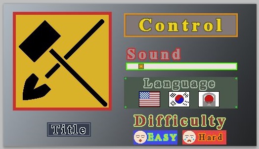그 다음으로는 난이도를 설정해 주는 버튼을 만들어 주었는데, 일단 난이도는 쉬움과 어려움 두가지가 있습니다. 물론 코드로 이걸 구현하는 것은 상당히 어려운 과정임은 두말하면 잔소리인 상황입니다.