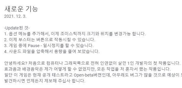 이번 포스팅에서는 다른게 아니라 공개 테스트라고 할 수 있는 베타 테스트가 업데이트 되었다는 것을 알려 드리기 위해서 글을 쓰고자 합니다. 일단 지난번에 있었던 유저의 요구사항을 반영해 주도록 했으며, 이제부터는 업데이터가 적용된 게임을 할 수 있게 됩니다.