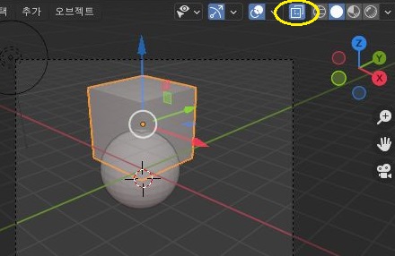 그런데 위 스크린샷에서 볼 수 있는 것처럼, 일단 사각형 2개가 겹쳐진 아이콘을 누르면, X레이 모드라고 해서 뒤에 숨겨진 오브젝트까지 제대로 볼 수 있도록 보여지는 것을 확인할 수 있습니다.