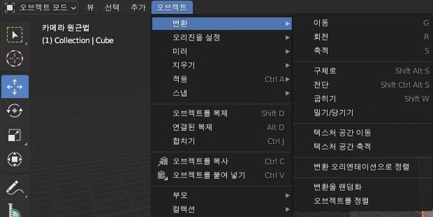 그리고 오브젝트를 선택하고 있는 상태에서 변환 메뉴에 있는 것을 해서 어떻게 하나하나 변형할 수 있기는 있습니다. 이제 이런 방법을 하나 테스트 할게 있는데........