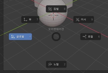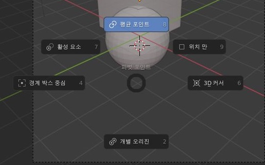 그리고 나서 블렌더에는 독특하게도 위 스크린샷처럼 퀵 메뉴를 부를 수가 있는데, 이 메뉴에 대한 예시 중에 하나를 보시고 계신 겁니다.