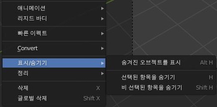 그리고 나서 오브젝트 메뉴에 있는 표시/숨기기를 통해서 일단 오브젝트를 숨기거나 다시 표시할 수 있습니다. 이것 역시 실제로 얼마나 쓰일지는 직접 해봐야 알듯 합니다.