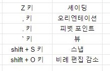 이번 포스팅에서는 다른게 아니라 드디어 블렌더 조작법에 대해서 마지막으로 포스팅을 올리고, 이후에는 모델링을 한 것을 한번 올려 보고자 합니다. 일단 이전 포스팅에서 마지막에 퀵 메뉴를 여는 것을 보여드렸는데, 이번 포스팅에서는 마지막에 도표로 이걸 정리해 보기까지 했습니다.