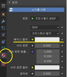 이번에는 위 스크린샷을 보시는 것처럼 표면을 가지고서 이야기 할 수 있는 메뉴에 들어가 보았습니다. 여기서 베이스 컬러를 한번 변경해 보도록 합니다.