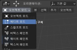 그리고 나서 다음으로 진행해야 하는 것으로는 현재 오브젝트 모드로 되어 있는 모드를 에디트 모드로 변환하는 것 입니다. 이렇게 선택을 하면...............