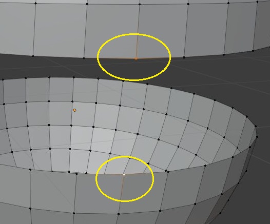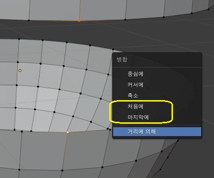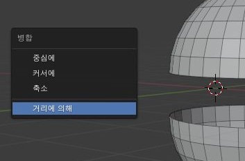 그래서 한번 실험으로 버텍스 (점) 2개를 선택하고 나서 M키를 눌러서 한번 병합이 어떻게 바뀌는지 알아보고자 실험을 했습니다.