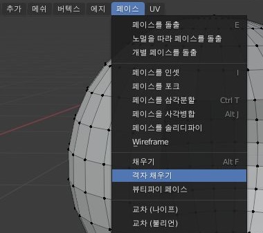 페이스 항목에 있는 격자 채우기를 이용해 보도록 해야 합니다. 일단 이 메뉴가 일정한 간격으로 있는 물체에서 작용할 수있는 것이라고 하기는 합니다.