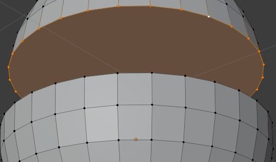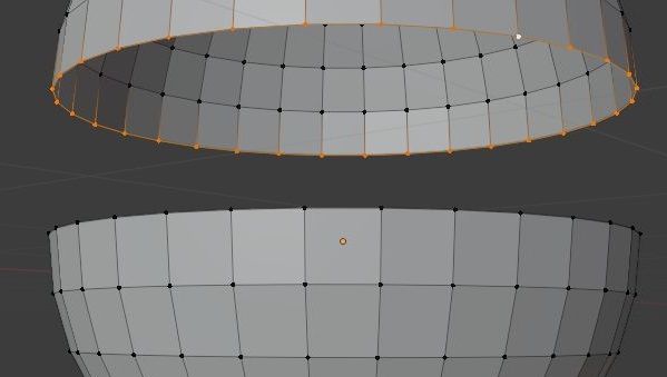 일단 여기서는 페이스 (면)을 만들어 보기 위해서, 한번 비어있는 원의 테두리를 선택해 주도록 했습니다. 선택에는 그냥 두 점을 이은 다음 alt 키를 누르고 선을 선택하면 되었습니다.
