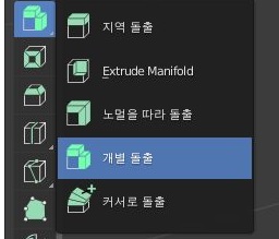 다음으로는 개별돌출이라는 것을 알아보러 가 보도록 합니다. 커서로 돌출은 그냥 커서가 가르키는 방향으로 돌출인데, 이건 어디가 다를지 알아보면.......
