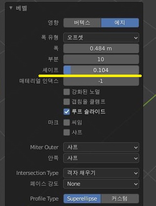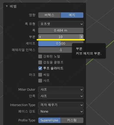 베벨의 사이드 메뉴에서 부분이라는 함수가 있는데, 이 부분을 원래는 1 되어 있는데 이를 10으로 늘려 보도록 했습니다. 그 결과는........