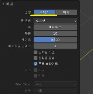 위 스크린샷과 같은 수준으로 일단 선 - 에지가 깎이는 것이 아니라 꼭지점인 버텍스가 깍이는 결과로 나왔습니다. 이 결과를 보면 이건 이거대로 사용이 가능할 것으로 예상이 됩니다.