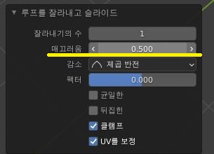 이번에는 0으로 되어 있던 매끄러움을 한번 변형해 보아서 어떤 식으로 변화가 일어나는 지를 알아보고자 합니다. 일단 이 수치를 0.5로 올리면.........
