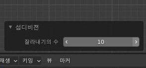 그리고 나서 어이지는 과정은 위 스크린샷에서 볼 수 있듯이 부분이라는 항목이 있는데, 이 항목은 섭디비젼이 있습니다. 이 항목으로 베지어 커브를 나누어 주도록 합니다.