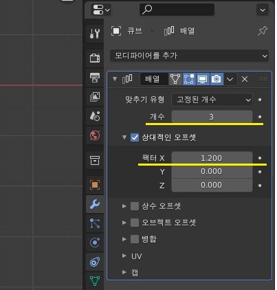 그리고 나서 먼저 시작을 한 것은 배열 모디파이어를 먼저 배치해 주는 것 입니다. 일단 널판지에 대해서 배열을 적용해서 일정한 간격으로 배치해 주도록 합니다.