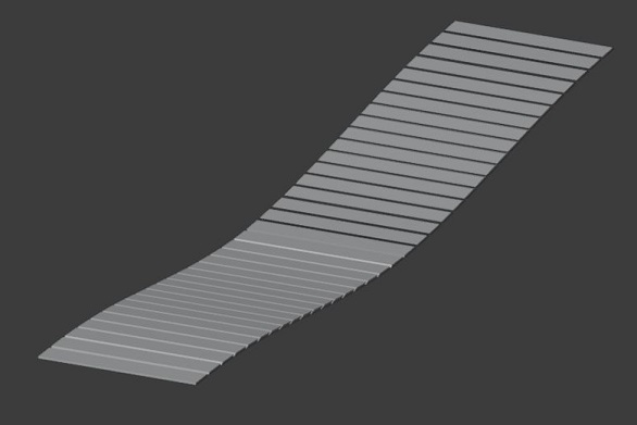 커브라는 모디파이어를 위 스크린샷에서 볼 수 있는 것처럼 추가해 주도록 합니다. 이렇게 하는 것으로 이제 널판지가 어떻게 배치가 되느냐 하면........