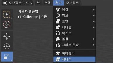 다음으로는 래티스라는 오브젝트를 추가하는 과정을 거쳐야 합니다. 정말로 추가 메뉴에서 가지고 올 수 있어야 합니다. 이렇게 가지고 와서는 이제 다음의 작업을 해 보도록 합니다.