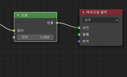 그 다음으로는 해야 할 것이 방출이라는 노드인데, 이 노드는 원래는 Emission이라는 노드입니다. 여기를 이용해서 어떻게 메테리얼 출력으로 연결시키면 1차적인 작업이 일단 끝이 납니다. 이렇게 해서 일단 다음의 작업을 진행할 수 있기는 있는데, 그래도 문제가 많이 있기는 있습니다. 사실 이걸 다 끝낸 것도 아직 픽셀아트로 완전히 분류하기에는 문제가 많이 있기는 하고요.