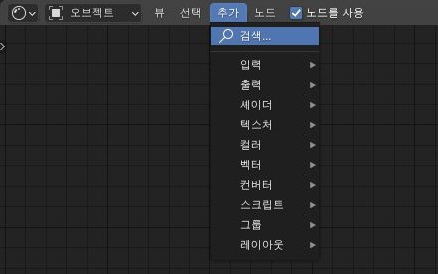 이 쉐이더 에디터에서 노드를 추가하기 위해서는 검색기능도 있는데, 영문자료를 쓰자니 한가지 골치아픈점이, 영어로 검색하면 안 나와서 한글로 새로 검색해야 합니다.