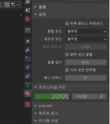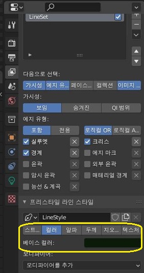그리고 나서 그 다음으로는 위 스크린샷에서 볼 수 있는 것처럼 일단 프리스타일 라인에서 투명도를 조정하기는 했는데, 이게 어떤 영향을 줄지는 모릅니다.